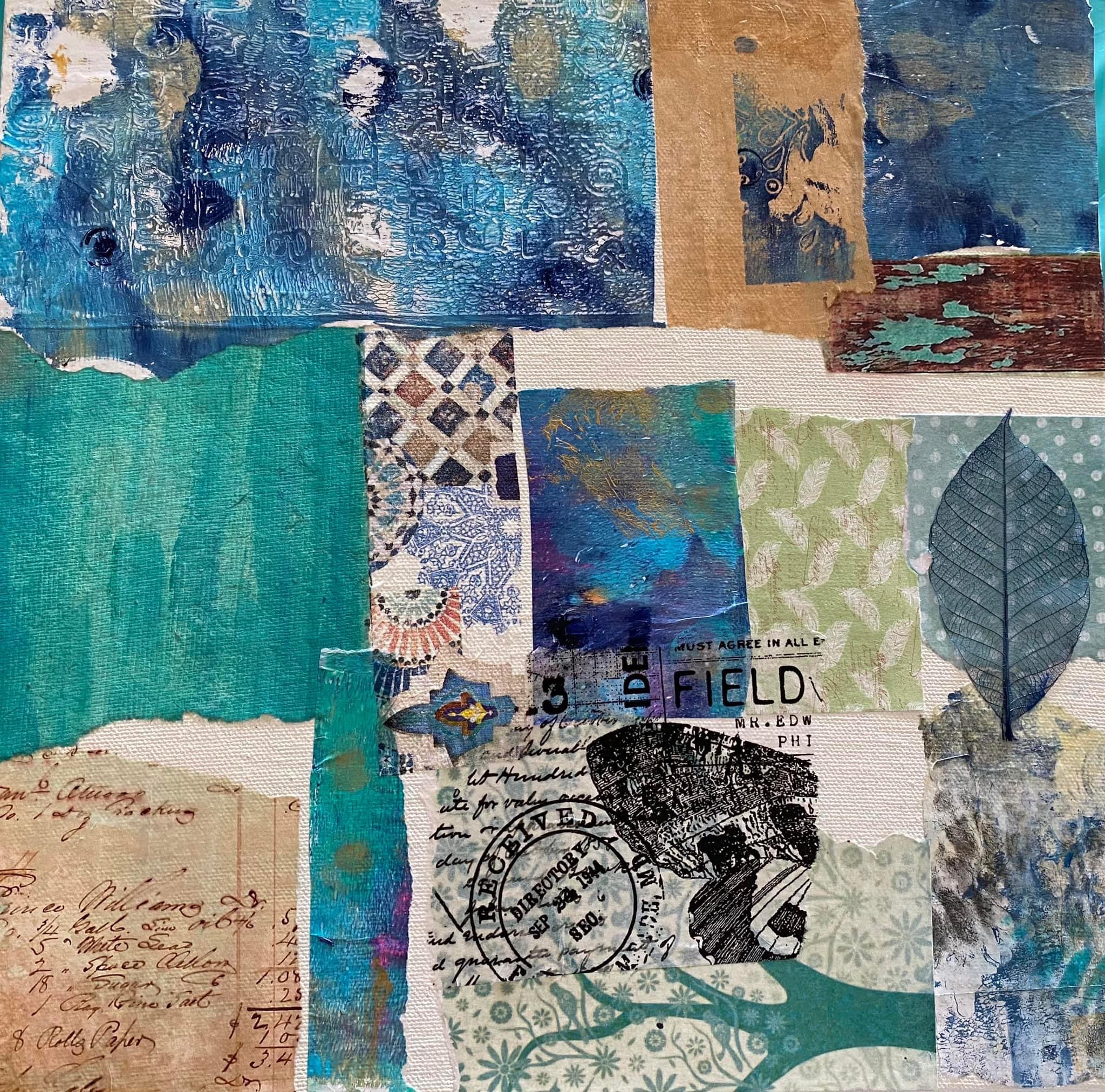 Enjoyed creating layers and textures. Mixed Media art in acrylics and collage.